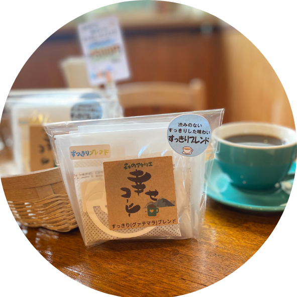 森のアトリエは、山形県米沢市にある、就労継続支援B型事業所です。自然に囲まれたこの場所で、最初にスタートした作業は、「コーヒードリップバッグ製造」。「コーヒー屋さんで働いてみたい!」という一人の方の夢から始まりました。障がいがあると、進路や就職先の選択肢が狭まり、「夢なんか、かなわない」と思いがち。でもここでは、ひとりひとりの「やってみたい!」をベースに、皆で仕事を創りだす努力をしています。今では、いろいろな夢が集まり、「絵仕事」や「外仕事」「カフェ仕事」など、ひとりひとりの夢に沿った作業を展開しています。